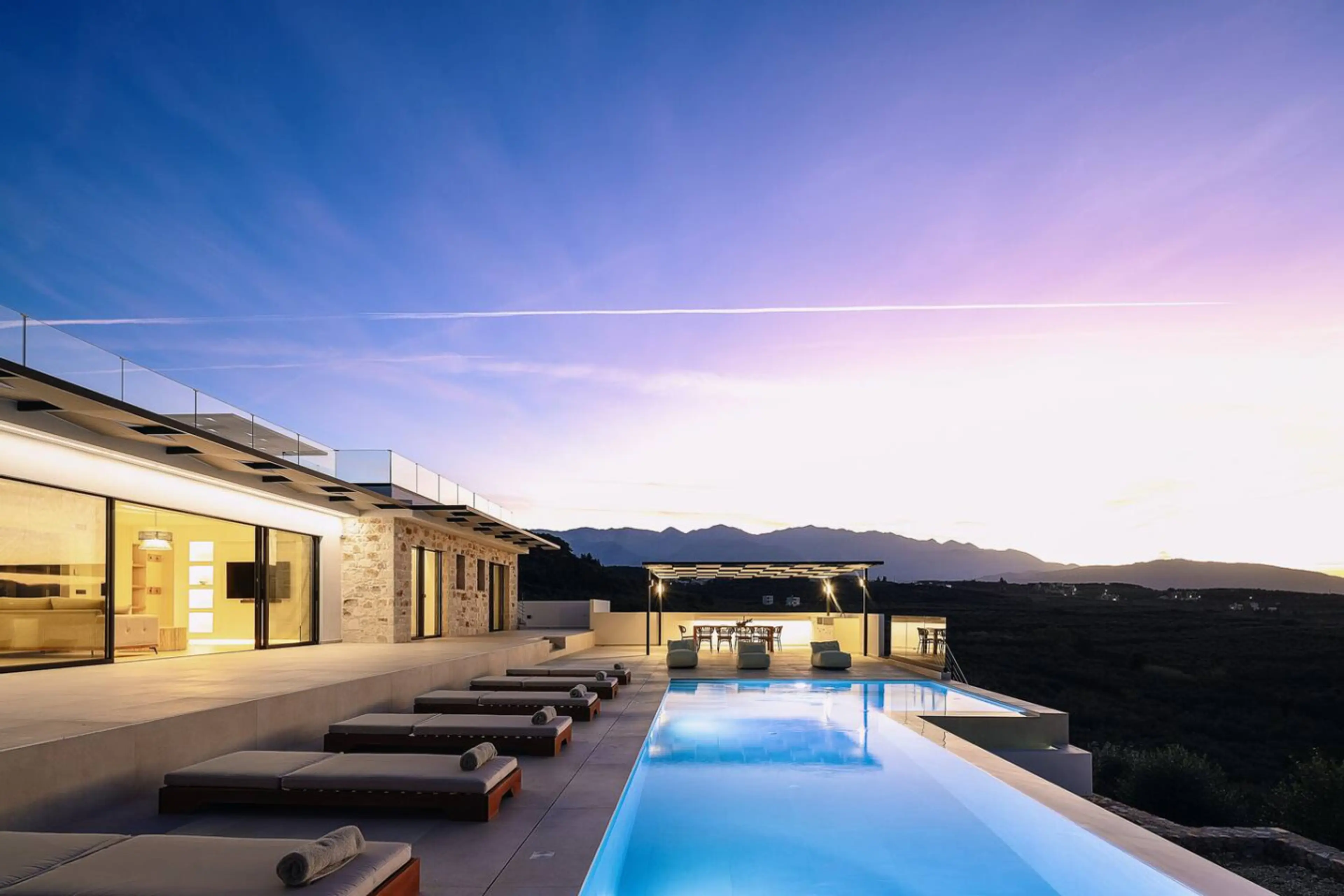 A brand-new work of art nestled among olive groves Villa Maninee offers breathtaking sea views over Souda Bay Designed as a refined luxury escape, the villa features five spacious bedrooms each with its own en-suite bathroom plus an additional guest toilet The heart of the home is the bright open‑p...